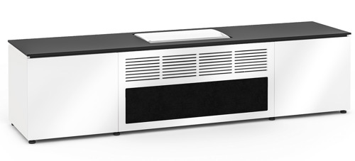A simple installation with no need to open the wall or ceiling to run cables. All supporting components can be enclosed in the credenza to provide a beautiful and simple solution.
